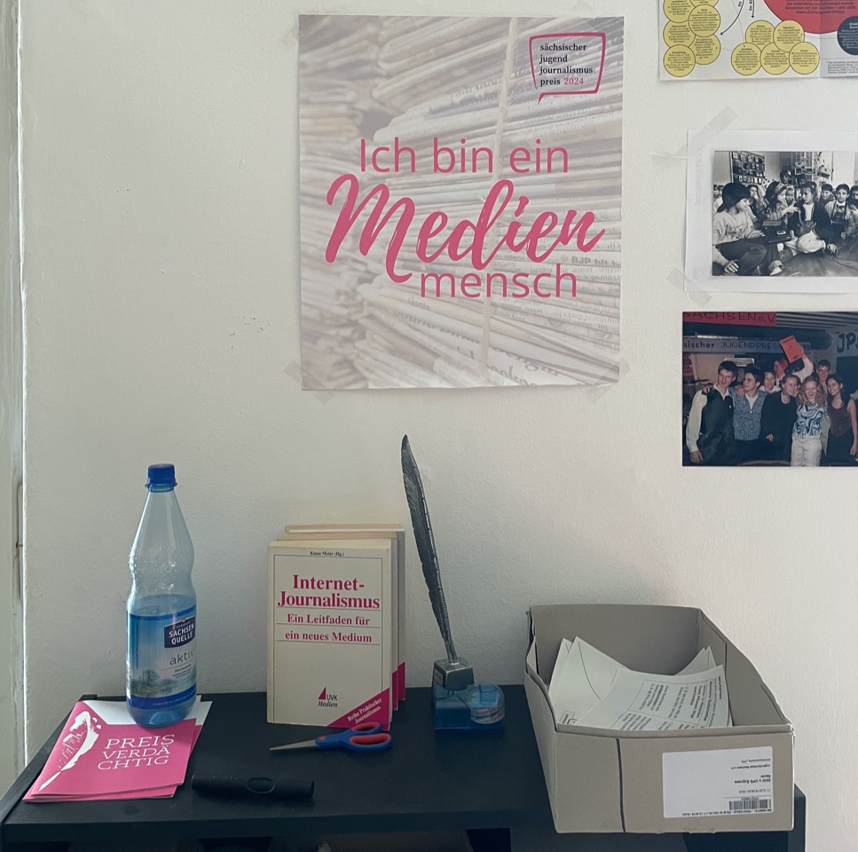 Die Jugendpresse Sachsen e. V. – eine von zwölf regionalen Gliederungen, die unter dem Dachverband Jugendpresse Deutschland tätig sind – ist ein Verband junger Medienmacher, dessen Ziel es ist, Medienkompetenz zu fördern und junge Medienschaffende zu unterstützen. Über die Ausrichtung des Sächsischen Jugendjournalismuspreises hinaus geschieht das auch über Workshops und Netzwerktreffen. So bieten Chris und seine Mitstreiter:innen etwa medienpädagogische Workshops zu Themen wie Fakenews oder Cyber-Mobbing an Schulen an und arbeiten sachsenweit mit Schülerzeitungen aller Coleur zusammen. Außerdem stellt die Jugendpresse Sachsen den Jugendpresseausweis aus, der es Nachwuchsjournalistinnen und -journalisten ermöglicht, ihre journalistische Tätigkeit nachzuweisen und beispielsweise Presseveranstaltungen zu besuchen und darüber zu berichten.