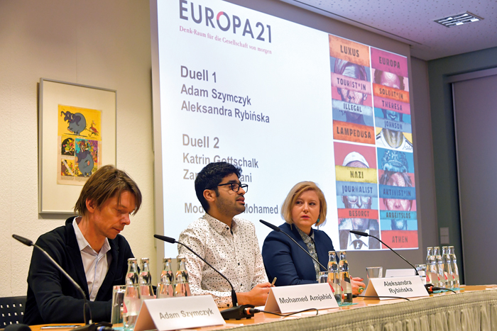 Um jede nur mögliche Denkrichtung und politische Position auf dem Podium zu repräsentieren, habe ich als Kurator Dutzende Einladungen an Autor/innen aus ganz Europa verschickt. Meistens trudelten danach von rechten und rechtskonservativen Autor/innen Absagen in meinen Posteingang. Ich vermute, dass sich vor allem diese Gruppe nicht wirklich mit anderen Argumenten auseinandersetzen möchte. Dabei hatte ich schon in der künstlerischen Begleitung von #Europa21 deutlich gemacht, dass es mir um einen fairen, konstruktiven und unterhaltsamen Austausch ging und geht. Als Kurator war ich von Anfang an überzeugt, dass das bessere Argument auf der Bühne gewinnen würde. Als Moderator und Kurator sagte ich mir während der Buchmesse immer wieder in den Leipziger Hallen: Mohamed, habe keine Angst vor der Konfrontation, denn sie kann nur gut ausgehen.