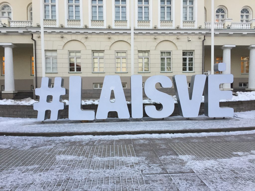 Hashtag Freiheit: Wer sich, wie die Litauer, lange mit Unterdrückung und Totalitarismus auseinanderzusetzen hatte, für den ist Freiheit ein hohes Gut. Am materialisierten Hashtag vor dem Präsidentenpalast am Simonas-Daukantas-Platz wird am 16. Februar regelmäßig die erste Unabhängigkeit Litauens gefeiert. Er erinnert aber auch daran, dass man in der Balten-Republik stolz auf die hohe WLAN-Abdeckung ist.