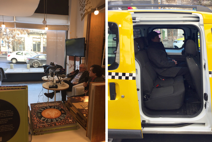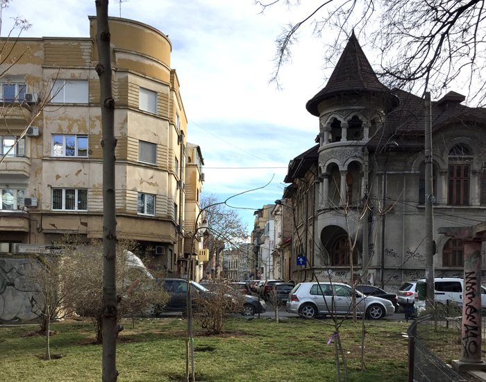 Durchs Schaufenster fällt unser Blick auf den Boulevard Regina Elisabeta – und auf jede Menge marode Jugendstil-Fassaden, einige mit großen „Zu verkaufen!“-Transparenten. Für den Schriftsteller ist der Boulevard ein magischer Ort: „In meiner Kindheit kam ich hierher, um ins Kino zu gehen – das war der Kino-Boulevard, allein in dieser Straße gab es um die 20 Kinos. Wir gingen hinein, um uns die nackten Brüste der Stuckdamen im dämmrigen Kinosaal anzuschauen. So etwas konnte man sonst nicht sehen, weil die Kommunisten so prüde waren.“ Cărtărescu hat sich der Kino-Boulevard mit seinem blätternden Jugendstil-Charme tief eingeprägt: „Es war der Anfang meines Wegs in die Welt.“
