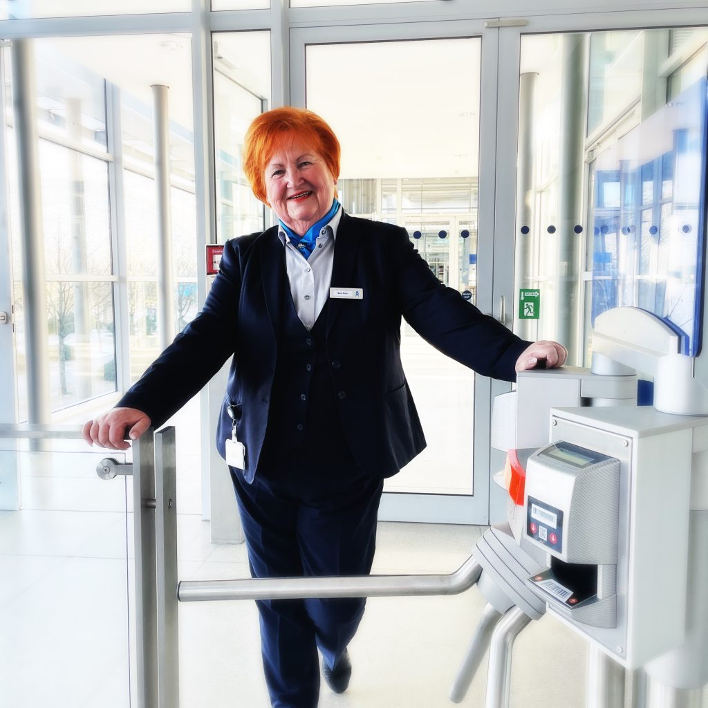 Seit 15 Jahren hat Maria Rehm, die Dame am Drehkreuz, keine Buchmesse verpasst. Im strengen blauen Kostüm ist sie stets auch ein Stück weit im diplomatischen Dienst