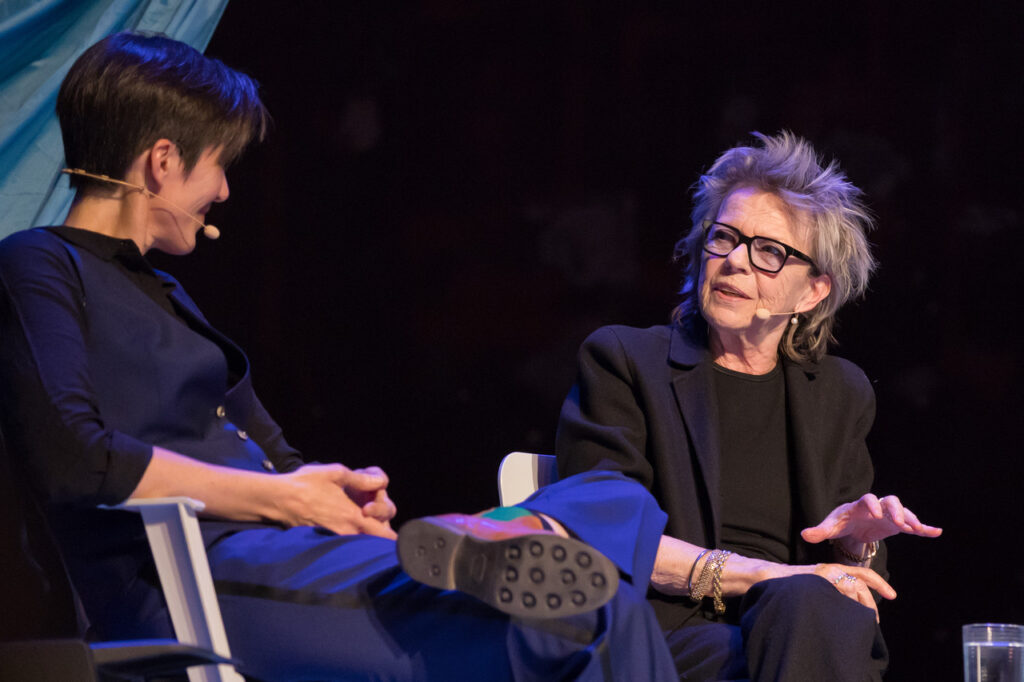 Die Zukunft ist weiblich: Gaea Schoeters & Connie Palmen (v. l.) in der Schaubühne © Gert Mothes