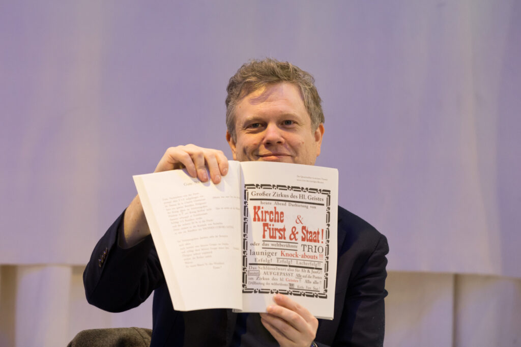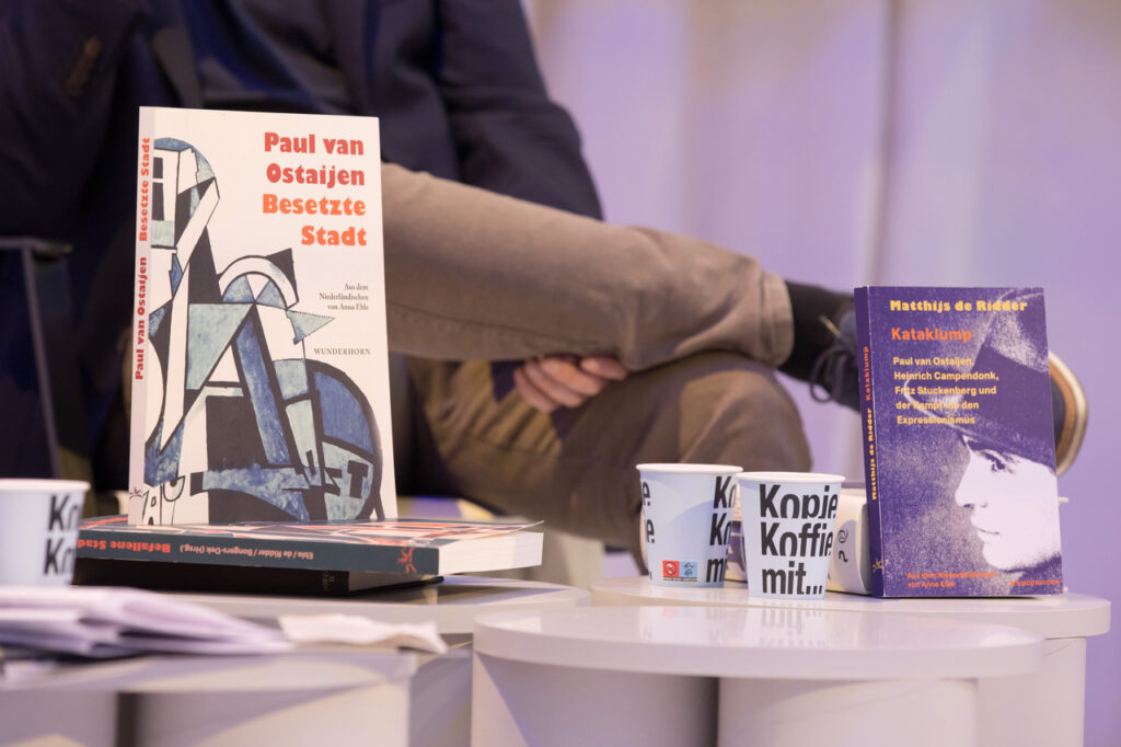 Wir erfahren all das in fast akzentfreiem Deutsch vom flamboyanten Gelehrten Matthijs de Ridder. Dessen fast 1000-seitiger Biografie-Ziegelstein „Paul van Ostaijen. Der Dichter, der die Welt verändern wollte“ (2023) erhielt begeisterte Kritiken und wurde für den flämischen Literaturpreis De Boon nominiert. Kataklump, eine Adaption von Paul van Ostaijens Abenteuern mit der deutschen Avantgarde, ist eben in deutscher Übersetzung bei Wunderhorn erschienen. Am Gastland-Messestand und in der Schaubühne Lindenfels konnten deutsche Leserinnen und Leser tief in die Welt der flämischen Avantgarde eintauchen – vom täglichen Leseatelier über eine Ausstellung bis zur multimedialen Performance und einer intimen nächtlichen Radiosendung. Paul van Ostaijen hätte das gefallen!