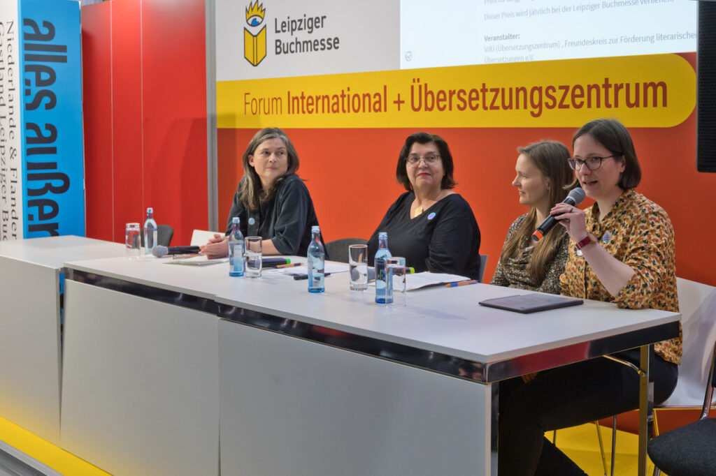 Übersetzerinnen im Rampenlicht: Alexandra Koch (Niederländische Stiftung für Literatur) mit Andrea Kluitmann, Lotte Hammond und Lisa Mensing ©Gert Mothes