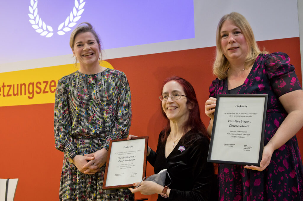 Fährfrauen: Es war 2014, als der C.H. Beck-Lektor Ulrich Nolte an einer sogenannten Publishers-Tour des Nederlands Letterenfonds, der Literaturstiftung der Niederlande, teilnahm. An einem schönen Abend in der Amsterdamer Keizersgracht, in der Uitgeverij Balans, wurde Nolte fast verschwörerisch von Cheflektor Jan Geurt Gaarland beiseite genommen: „Du, Ulrich, schau mal: Dieses Werk hier ist in alle großen Sprachen übersetzt, aber noch nicht ins Deutsche – wollt ihr das nicht machen?“ Als „Zuckerl“ ließ Gaarland noch durchblicken, dass schon am Band gearbeitet würde. „Wir haben uns bei der Ehre gepackt gefühlt“, sagte Nolte nun im Übersetzerforum der Leipziger Buchmesse. Dort wurde, zehn Jahre, nachdem alles begann, der Else-Otten-Übersetzerpreis an Simone Schroth (*1974) und Christina Siever (*1982) vergeben. Die beiden übersetzten die 2023 bei C.H. Beck unter dem Titel „Ich will die Chronistin dieser Zeit werden“ erschienenen Tagebücher und Briefe von Etty Hillesum, die vor 80 Jahren in Auschwitz ermordet wurde. Sie sind, wie das Tagebuch der Anne Frank, ein Standardwerk jüdischer Erinnerungskultur – aber auch große Literatur auf fast 1000 Seiten. Nach zehn Jahren hat sich ein Kreis geschlossen. Der mit 5000 Euro dotierte Else-Otten-Übersetzerpreis wird alle drei Jahre vom Letterenfonds vergeben; ausgezeichnet wird die beste deutsche Übersetzung eines niederländischsprachigen Werks der vorangehenden drei Jahre. Es klingt verrückt, ist aber wahr: Die in Zürich lebende Christina Siever, die den Tagebuch-Part der Ausgabe übernommen hat, und die Brief-Übersetzerin Simone Schroth, die als Dozentin an der Lancaster University in Großbritannien arbeitet, haben sich am Tag vor der Preisvergabe das erste Mal persönlich gesehen – und am Abend trotzdem gleich eine gemeinsame Lesung bestritten. Die beiden Frauen, die die Initiative #namethetranslator unterstützen, freuen sich über die Wertschätzung ihrer Arbeit: „Das Beste im Leben kommt unverhofft und als Geschenk“, sagte Simone Schroth. „Eigentlich geht der Preis an Etty, wir sind die Fährfrauen. Aber je sichtbarer wir werden, desto besser ist es für das Projekt.“
