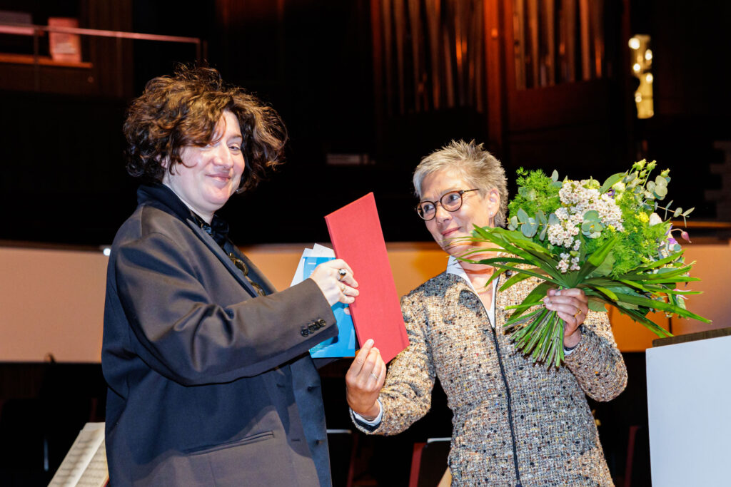 Preisübergabe: Maria Stepanova und Börsenvereins-Vorsteherin Karin Schmidt-Friderichs (c) Leipziger Messe/Jens Schlüter
