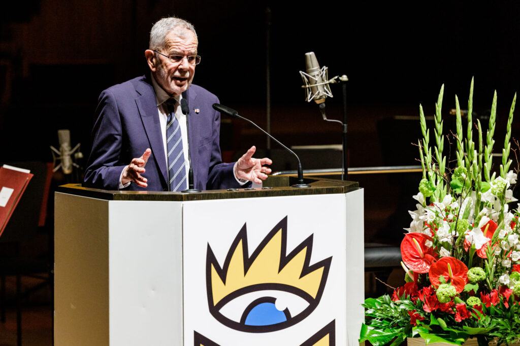 Launiger Redner: Österreichs Bundespräsident Alexander Van der Bellen (c) Leipziger Messe/Jens Schlüter