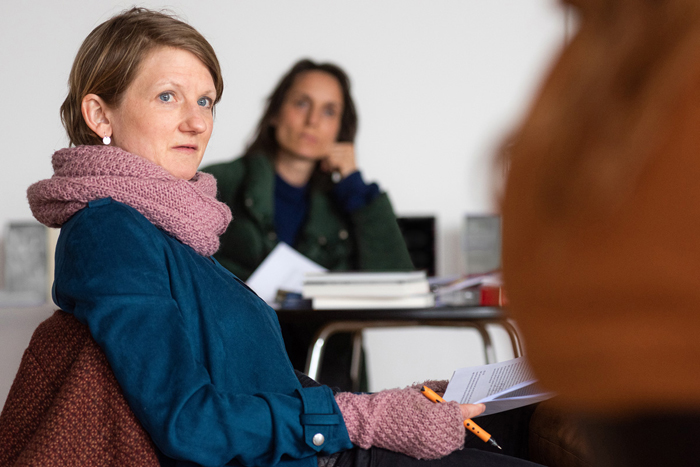 Als Orte, an denen das literarische Feld summt und brummt, sind Literaturhäuser einst erfunden worden. Nun liegen sie meist im Dornröschenschlaf. Auch am Literarischen Colloquium Berlin (LCB) wird dieser Tage, pandemiebedingt, wieder zwangsentschleunigt im Homeoffice gearbeitet, findet Programm vor allem digital statt. An einem Freitag im März tut sich jedoch etwas im großen Veranstaltungssaal, in dem man durchs weit geöffnete Fenster den Wannsee im Blick hat: An sieben weit entfernt voneinander stehenden Tischen sitzen sieben Damen und Herren vor Kalt- und Heißgetränken, in Griffweite Notizkladden, Tabletts, Bücherstapel und ein wenig Knabberei gegen Unterzuckerung. Ein Gesprächsballett, eine Performance? Alles falsch. Es ist die Jury des Preises der Leipziger Buchmesse, die hier tagt – nicht als virtuelle Gruppe von Talking Heads am Bildschirm, sondern ganz real, physisch, im richtigen Leben. Ein wunderbarer Moment; analog haben sich die meisten Kritikerkolleginnen und –kollegen über Monate nicht mehr gesehen. Allerdings: „Keiner von uns konnte sich vorstellen, wie man eine zehnstündige Jurydiskussion online stattfinden lassen kann“, sagt Jury-Vorsitzender Jens Bisky. „Wir halten alle Maßnahmen ein, die empfohlen werden und vernünftig sind – von Distanz und Dauerlüftung bis zu vorherigen Tests. Trotz der großen Abstände zwischen den Tischen ist es wie immer: spannend und anstrengend“. Und am Ende, lacht Bisky „gibt’s ein Ergebnis!“