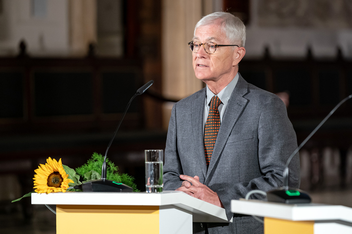 Aus Ungarn war László Földényi angereist, 1952 in Debrecen geboren, Kunsttheoretiker, Literaturwissenschaftler, Essayist. Der Leipziger Buchpreis zur Europäischen Verständigung wurde ihm im vergangenen Jahr für sein Buch „Lob der Melancholie“ zugesprochen, aber er hatte ihn wegen der pandemiebedingten Absage der Messe nicht entgegennehmen können. Zu Beginn seiner Dankrede sprach Földényi vom Verlust der menschlichen Werte, am Ende kam er noch einmal darauf zurück: „Man bemüht sich, etwas dagegen zu unternehmen – mit Taten, mit Worten. Oder mit Büchern. Dieser Leipziger Buchpreis zeigt – wirft man einen Blick auf die Liste der bisherigen Preisträger –dass es noch Inseln gibt, wo man versucht, dem allgemeinen Zeitgeist wirksam entgegenzutreten, gerade im Namen der menschlichen Werte.“