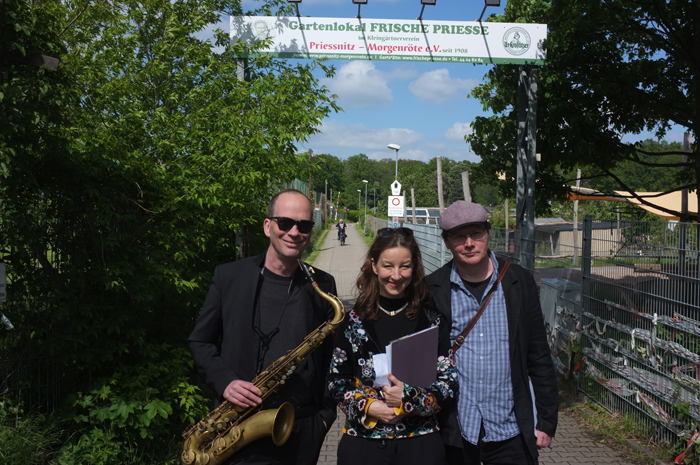 Der Weg nach Oobliadooh: Die Messehallen bleiben leer, rund 400 Lesungen finden online statt. Dank der gesunkenen Inzidenzen sind jedoch Freiluftveranstaltungen urplötzlich wieder möglich – in Gärten, auf Bühnen in Parks und Hinterhöfen. Ansgar Weber von der Buchhandlung Seitenblick lädt zum Spaziergang ein: Unter dem Motto „Zwischen Priesse und Bebop“ erwandern mehr als 30 Neugierige den Leutzsch-Lindenauer Mikrokosmos des großen Schriftstellers Fritz Rudolf Fries (1935-2014). Es geht um spanisch-deutsche Familienbande, Zwangsarbeiter, verschwundene Ballsäle und Jazz, weshalb wir neben der Schauspielerin Verena Noll auch vom Saxofonisten Torsten Walther begleitet werden, der an einer zugigen Hausecke plötzlich die Marseillaise ins Horn bläst.