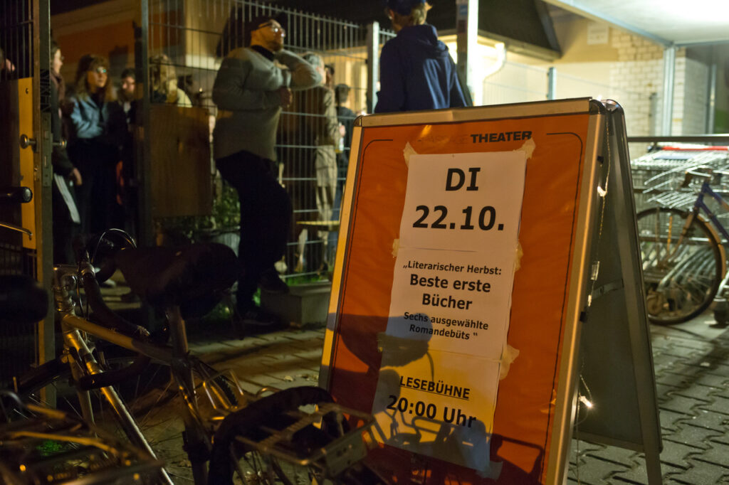Welcher Ort wäre für diesen Abend besser geeignet? Das Ost-Passage Theater (OTP) ist eine ehemalige Markthalle, die als Lichtspielhaus genutzt wurde, wegen Einsturzgefahr schließen musste und heute, nach unwahrscheinlich viel Einsatz durch Engagierte vor Ort, wieder ein unabhängiger Kulturraum ist – über einer Filiale von Aldi Nord. Und auch das Format ist ein Glücksfall: „Beste erste Bücher“ ist ein großer Abend der Romandebüts, bei dem die Texte im Mittelpunkt stehen. Es wird gelesen und punktgenau anmoderiert – kein Geschwafel, keine Fragen á la „Wie bist du zum Schreiben gekommen?“. Pate für das Konzept stand bei unserem ersten Literarischen Herbst im Oktober 2019 ein Lesungsformat am Deutschen Literaturinstitut Leipzig (DLL), die „Institutsprosa“. Wer Ende der Neunziger, Anfang der Nullerjahre der Meinung war, dass die Literatur, die in Leipzig und Hildesheim, den damals noch einzigen akademischen Schreibschulen der Republik, entstand, zwar handwerklich perfekt und sprachlich ausgefeilt gewesen sei, aber leider nichts zu erzählen habe, brachte das gern auf eben diese Formel. Das Schmähetikett ist inzwischen zu einer positiv besetzten Trademark geworden: „Institutsprosa“ nennt sich eine von unserem Mitstreiter Jörn Dege organisierte Veranstaltung, die seit einigen Jahren zu Buchmesse-Zeiten für rappelvolle Räume am DLL sorgt.