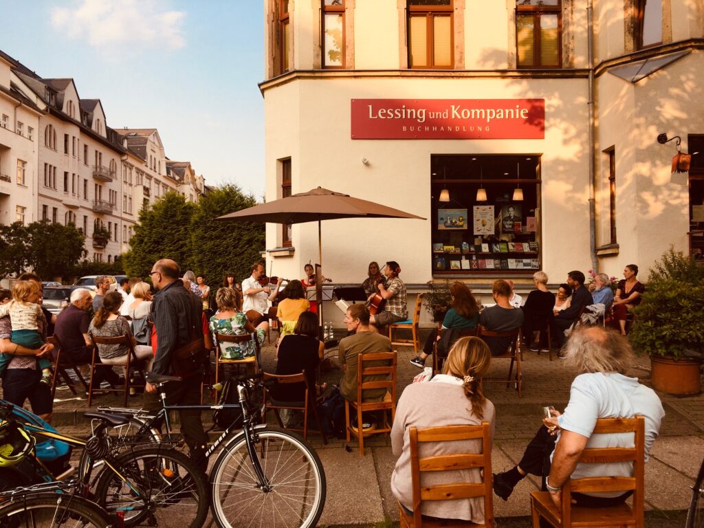 Kowalke: Wir haben im Lockdown mit befreundeten Musikern der Robert-Schumann-Philharmonie gesprochen, die auch nicht auftreten konnten. So wurde der „FreitagsLuK“ geboren; von Mai bis September, den ganzen Sommer über, gab es die letzten beiden Jahre immer freitags 19.30 Uhr Konzerte mit wechselnden Beteiligten vor dem Laden. Wir haben das mit kleinem Geld, aus eigener Tasche finanziert. 2022 gab es dann sogar eine Mikroprojekt-Förderung der Stadt.