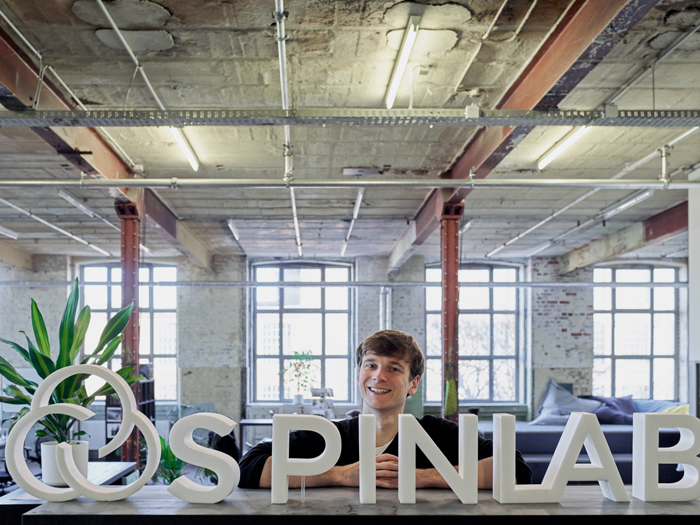 Das helle, von wuchtigen Eisenträgern durchzogene 700-Quadratmeter-Büro in Halle 14 des Spinnereigeländes wirkt auf den ersten Blick wie die Blaupause der hippen Start-up-Welt zwischen Brooklyn und Kapstadt: An offenen Schreibtisch-Inseln beugen sich junge Menschen über ihre Rechner, leise Gespräche, mal auf Deutsch, mal auf Englisch, konzentrierte Geschäftigkeit. Eine überdimensionale Schaukel, bunte Sitzsäcke, Teeküche und nüchterne Besprechungsräume hinter Glasscheiben. Selbst den unvermeidlichen Kickertisch gibt es – doch im Moment denkt keiner ans Chillen. Hinter dem langen Tresen an der Stirnseite der Halle klebt SpinLab-Geschäftsführer Eric Weber Quittungen. „In einem kleinen Team und einer extrem dynamischen Struktur geht es glücklicher Weise sehr, sehr bunt zu“, lacht Weber, der kaum älter wirkt als die Gründer, denen er zur Seite steht. „Ich bin hier Facility Manager, Berater, Foundraiser, der Feelgood-Mann. Und manchmal eben auch Buchhalter.“ Nach seinem BWL-Studium wechselte Weber an die HHL Leipzig Graduate School of Management, wo er neben seiner Promotion für das hochschulübergreifende Gründernetzwerk SMILE arbeitete. Als die Leipziger Baumwollspinnerei und die HHL im November 2014 die SpinLab Accelerator GmbH gründeten, lief alles auf den jungen Wissenschaftler zu: „Ich habe mir einen Traumjob geschaffen, der unglaublich herausfordernd ist. Ich lerne täglich neu.“ Die Start-ups – sämtlich junge Firmen mit innovativen, technologieorientierten Geschäftsideen – finden im SpinLab ideale Arbeitsbedingungen. „Wir haben eine starke Community von Gleichgesinnten, das schafft Vertrauen.“ Kein Wunder, dass vier Teams aus der ersten Runde als Mieter in der Spinnerei geblieben sind. „Unser Mentoren-Netzwerk aus rund 70 Unternehmern und Investoren bietet wöchentlich Workshops zu diversen Themen an – von Steuerrechtsproblemen bis zu IT, Marketing oder Preisfindung.“ Dazu kommen rund 15 „Premiumpartner“ – renommierte Unternehmen von Porsche, Postbank, E.ON oder KPMG bis zu Microsoft. Noch in diesem Jahr soll ein eigenes Recruting-Netzwerk seine Arbeit aufnehmen.