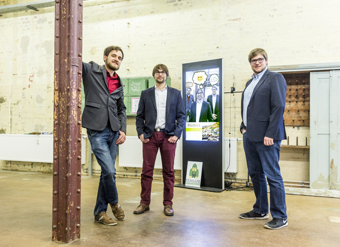 Echtes Neuland ist die Buchbranche für Matthias Freysoldt und seine Kollegen vom Leipziger Startup Sensape. Sie bringen Computern mittels Bildsensoren und spezieller Algorithmen das Sehen und Verstehen bei – Prototypen sind bereits erfolgreich im Handel und auf Messen im Einsatz. Für die Leipziger Buchmesse im März haben die jungen Tüftler aus dem SpinLab einen Bucherkenner gebaut, mit dem man über kleine Wisch-Gesten kommunizieren kann – sehr zur Freude des Publikums, das vorm „Sensape Chimp“ posiert wie in der Karaoke Bar. „Mit unserer Technologie geben wir dem traditionellen Einzelhandel Werkzeuge an die Hand, um den nächsten Schritt in die Zukunft zu gehen. Die Verschmelzung von Netz und lokalem Laden kann gerade für den Buchhandel sehr interessant sein.“
