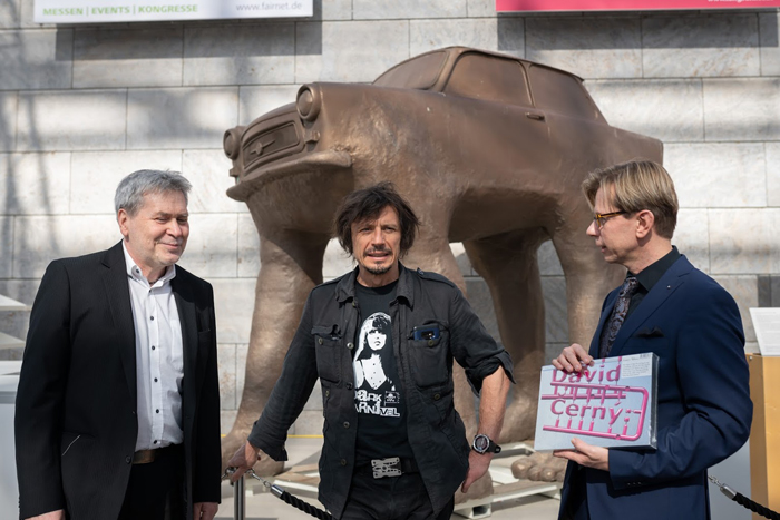 Trotz der professionellen Vorbereitung habe ich ganz schön Herzklopfen gehabt. Niemand wusste, wie der Tschechische Nationalstand – „ein Schiff“ voll von tschechischen Büchern in deutscher Übersetzung – angenommen werden würde. „Doch der Stand entpuppt sich vom ersten Tag an in seiner Mischung aus Lesungen und Diskussionen als Publikumsmagnet“, schrieb die Leipziger Volkszeitung. Ich muss tatsächlich gestehen, er war eher zu klein dimensioniert. Auch unsere eigene Messezeitung half uns dabei, die bisher unbekannten neuen AutorInnen dem Publikum nahezubringen. Zu unserer Freude sind manche BesucherInnen zu richtigen Sammlerfans der ganzen Auflage geworden. Jeden Tag haben sie auf die neue Ausgabe beim Trabi auf Beinen (eine Installation von David Černý) in der Glashalle gewartet.